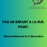 Le vendredi 5 décembre, veille de la Saint-Nicolas, des dizaines de rassemblements « Pas un enfant à la rue. Point. » sont organisés à Bruxelles et en Wallonie. Il y en a certainement un près de chez vous. Rejoignez-le !